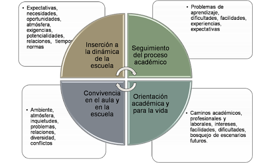 la intervención del tutor con el grupo de alumnos y de los Consejos de Tutores a través de la Acción Tutorial deberá ser planificada y evaluada en ánimo de construir cada vez con mayor eficacia una espacio escolar en que los alumnos desarrollen sus competencias de manera integral, por ello es importante partir de la caracterización de los grupos de alumnos, la escuela y en general, la comunidad escolar considerando los ámbitos en los que se ha de actuar como se muestra en el esquema